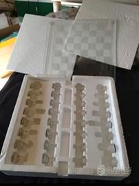 Elegante Scacchiera in Vetro lucido e satinato in edizione limitata, con scacchi in vetro bianco e vetro satinato Perfettamente conservata e protetta. Per gli amanti degli scacchi