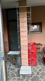 Scaffalatura a colonna misure 210x39x39mm, cromato, con vari ripiani di cui tre portabottiglie. Già smontato.