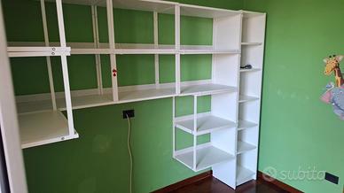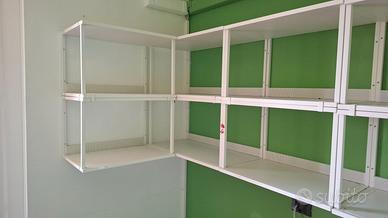 Scaffalatura composta da una serie di componenti a parete, ideale come libreria o porta oggetti, composta da: 6 elementi da appendere 40x40x60 cm ; 4 elementi da appendere 40x40x60 cm ; 1 elemento da terra a ripiani 40x40x200cm . Struttura in metallo verniciato. Componibile a piacere . Marchio Ikea serie Platsa .