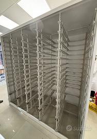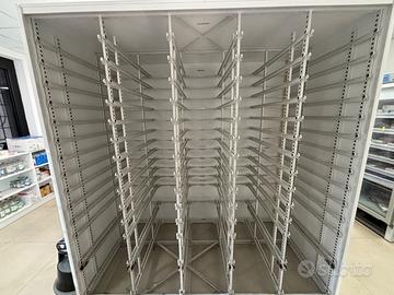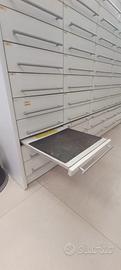 vendo 2 scaffalature con cassetti, presentano 5 colonne ciascuna e 14 cassetti per colonna per un totale di 70 cassetti per scaffalatura.