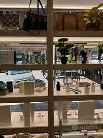 Vendo causa rinnovo locali magnifica scaffalatura espositiva, perfetta per allestire una vetrina di grande impatto visivo e valorizzare al massimo i propri prodotti. Ideale per boutique, profumerie, gioiellerie, concept store e negozi di design.