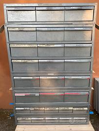 Vendo scaffalatura Montanti n.10 altezza 3mt profondita 50cm Ripiani n.21 misura larghezza 100 cm profondità 50 cm Cassetti n.28 varie altezze ( n.10 h=15 / n.9 h=20 / n.9 h=55) Euro 340 Ritiro sul posto