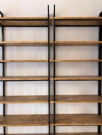 1)SCAFFALATURA COMPONIBILE PER PARETE, IN METALLO SMALTATO CON RIPIANI IN LEGNO: LUNGHEZZA variabile da mt. 0.90 a mt. 2.50 x ALTEZZA variabile da mt. 2,10 a mt. 2.60, con RIPIANI di diversa composizione di larghezza variabile da mt. 0.25 a mt. 0.49
