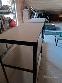 Vendo scaffalatura con pannelli in legno e struttura in acciaio, componibile. Altezza delle strutture così come in foto 99 cm ciascuna, larghezza 99 cm e profondità 50cm. Vendo per inutilizzo. Come nuove.