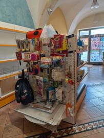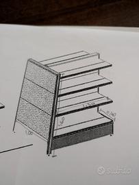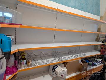 Vendo scaffalatura modulare in metallo compresa di bancone, ganci e griglie separatorie, ideale per negozi o attività commerciali, in buono stato.