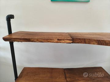 Scaffalatura, libreria, ecc ...stile industrial con supporti in ferro colore grafite opaco, mensole in Rovere massello spess.