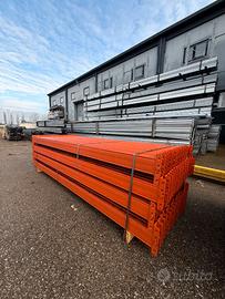 SCAFFALATURA INDUSTRIALE PORTAPALLET: - OLTRE 100 METRI LINEARI - H 6000mm - P 1100mm - CAMPATE DA 2700mm - PORTATA A PIANO 2400kg - SPALLE DI COLORE BLU - CORRENTI DI COLORE ARANCIONE - POSSIBILITA' DI PARACOLPI IN PRONTA CONSEGNA
