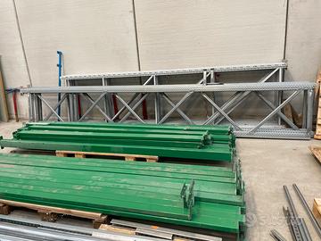 Vendo 2 spalle scaffalatura gialla da 5 metri e 3 spalle da 4 metri tipo verde