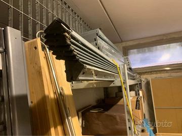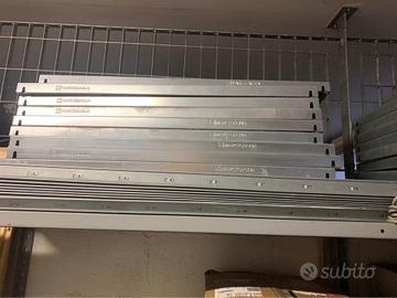 Vendo scaffalatura componibile ad incastro in acciaio zincato per inutilizzo 16 ripiani 80x30 e 12 montanti da h 2,40 ( controllate le foto)