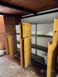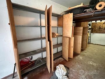 Scaffalatura metallica con ante di legno, ottimo per garage o cantine, misure: 3 moduli 1m larghezza x 2 m altezza, 2 moduli 1 m larghezza x 2m altezza. Da smontare e portare via a carico dell’acquirente