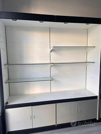 Scaffalatura modulare componibile Metri lineari 10 di cui : 3m con vetrina 8 cassettoni con ante 1 bancone con cassetti 2,75m Vista e piaciuta