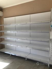 Vendo scaffalatura in ferro bianca con bancone in vetro per negozio cartoleria mai utilizzata per mancata apertura nuova info in privato trasporto in tutta italia a carico dell’acquirente