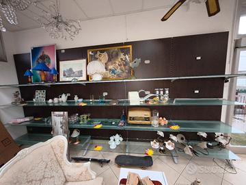6 metri di Scaffalatura per negozio con ripiani in vetro modulabili in varie posizioni! Gli scaffali si possono montare o in serie oppure a blocchi da 1 metro! Vetri con spessori da 8mm