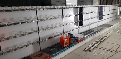 Arredo per circa 400 mq composto da diverse scaffalature appenderia e vetrine ideali per arredare attività di vario genere