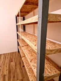 Realizzato artigianalmente da falegnameria, scaffale in OSB incollato e rinforzato, struttura molto robusta adatta anche a carichi pesanti, completamente smontabile. Dimensioni assai generose, ben 2,50 metri X 42 cm. 5 ripiani per un' altezza totale di 2 metri. Possibilità di trasporto (con furgone) e montaggio entro 20 km da Trebaseleghe al costo aggiuntivo di euro 40. Oppure 20 euro solo trasporto. Assicuro massima serietà!! A disposizione, grazie.