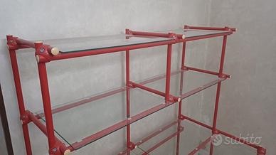 Scaffalatura tubolare con 6 ripiani in vetro che può essere adibita anche come scrivania. Vero affare, vendo solo per questioni di spazio! Dimensioni: base 85x155cm altezza 175cm