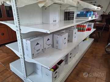 Vendo Scaffalatura, per chiusura negozio, in metallo verniciato bianco completi di schienali a pannello.