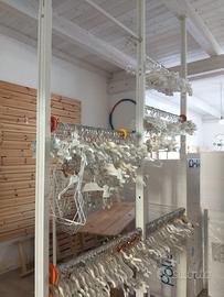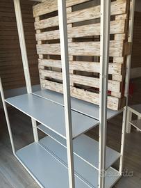 Vendo in blocco arredamento e scaffalature da negozio come da foto, compresi altri espositori non visibili perchè è possibile caricare solo 10 foto. Ci sono scaffali in legno e metallo, espositori vari, sistema porta-abiti Ikea elvarli regolabile con circa 1000 appendiabiti. Arredamento da parete in legno naturale con ganci per esporre compresi. 2 manichini, 1 estintore (da ricaricare), e vari altre cose.