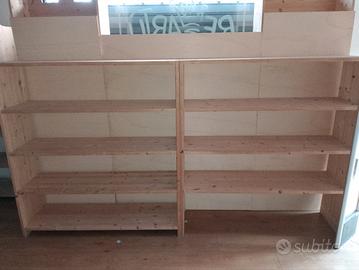 Vendo scaffalature in abete lamellare spessore 27mm utilizzate in un negozio causa cessazione di attività commerciale.