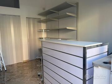 Sì vende arredamento negozio con 7 ante autoportanti montabili sia a muro che al centro della stanza con 5 scaffe grandi per ogni anta.