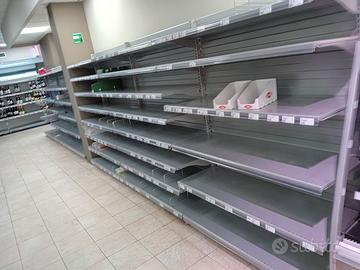 Vendo scaffalature metalliche uso negozi, supermercati usate in buono stato, ml. 65 circa. Visionabili