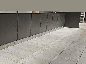 scaffalature supermercato usate, si tratta di una scaffalatura completa per market/discount molto curata nei particolari di marca Lidauer, non è la classica modulare italiana formata da montante-mensola-ripiano, anche se la struttura non cambia di molto gli schienali e i ripiani sono fatti in legno con finitura in laminato plastico effetto ardesia, a breve pubblicheremo il video per montaggio/smontaggio. tutto l'arredo occupa un'area di circa 30X18m ma come di consueto nei discount alcuni vani non hanno ripiani ma posti pallet, per fare il calcolo del prezzo abbiamo suddiviso il materiale in: - 34m lineari di murale profondità 87/95cm 3 ripiani più base dove è inclusa anche la parte di esposizione vino - 3.400,00€ iva esclusa (100€/m) - 74m lineari di gondola con ripiani con 2/3 ripiani più base profondità 185/85+85cm - 5.000,00€ (circa 70€/m) - 10m lineari di gondola con finitura bianca e illuminazione led con 2/3 ripiani più base profondità 85cm - 800,00€ - 38m di vani pallet la vendiamo solo in blocco a 8.000,00€