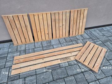 Scaffale in legno di pino massiccio con 5 ripiani con montanti/spalle