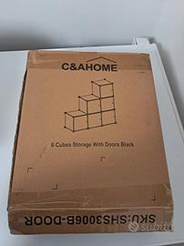 C&AHOME Scaffale a 6 cubi nero con sportello trasparente. Misura cubi 30 x 30 x30 cm. Si può montare in diverse combinazioni. NUOVO MAI USATO