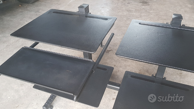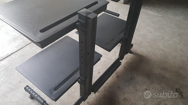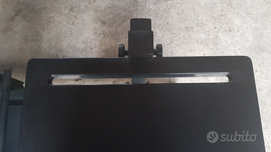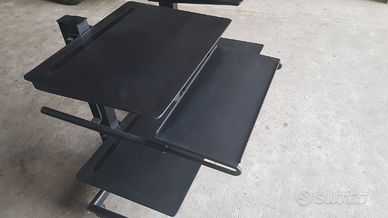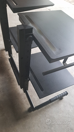 Struttura verniciata a polvere nero satinato come nuova, in metallo, molto robusta per agganciare 4 piani robustissimi rivestiti in gomma antiurto e antiscivolo (di cui uno con taglio per scorrimento moduli continui) e un appoggio estraibile per tastiera, regolabili in 24 posizioni, copricavi elettrici in gomma e piedini regolabili.