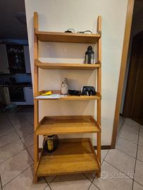 vendo scaffale a scala completamente in legno, buono stato, adatto sia da tenere all'interno che all'esterno (in una zona coperta es terrazzo/giardino)