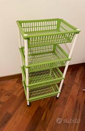 Vendo scaffale in plastica Tontarelli componibile completo di ruote. Ottime condizioni. Misure: Altezza: 87cm Base: 40cm x 30 cm