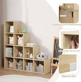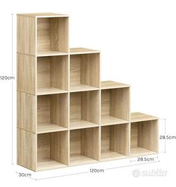 Vendo Scaffale per Libri, Scaffale per Scale Con 10 Cubi, Libreria in Legno Ingegnerizzato Rovere Chiaro, per Camera da Letto, Soggiorno, Studio, Ufficio, 120x30x120cm, SK062hei