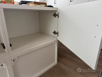 Ikea modello Besta 2 pezzi di scaffale/contenitore con ante Utilizzato come pensile sopra la tv ma si può mettere anche a terra. Si può montare dando la forma che si preferisce Sistema di apertura a pressione incluso