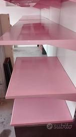 scaffale da esposizione centrale lunghezza totale 5m, doppi ripiani, altezza 1,2m