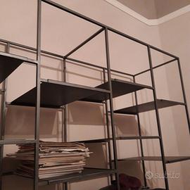 scaffale con mensole di ferro unico pezzo con ruote, mis 150xh220