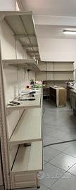 Vendo scaffale espositivo a parete componibile per complessivo lunghezza cm 900 di cui cm 110 ad angolo, profondità cm 40 altezza cm 225 a causa chiusura attività commerciale. Ritiro presso il venditore. Prezzo trattabile