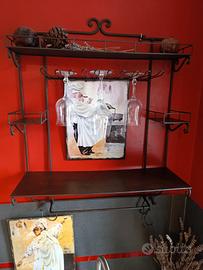 bellissima etagere in ferro battuto, con anche spazio per bicchieri: h 72 cm, lunghezza 60, prof. 20. Molto resistente e ben fatta