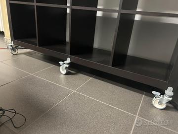 Scaffale nero IKEA KALLAX, solido e versatile con 4 rotelle.