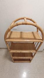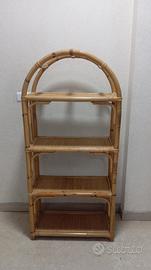 Vendo elegante scaffale in bambù naturale con ripiani in rattan intrecciato, dallo stile vintage anni ’70.