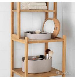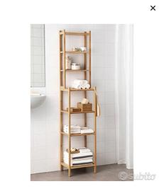 Nuovo, mai usato, montato e messo da parte, vendo per eratto acquisto. I ripiani hanno profondità diverse, quindi li puoi usare per asciugamani, cestini e anche accessori e prodotti di bellezza, sono adatti agli ambienti umidi, perché sono fatti in bambù. Eventualmente si può spezzare in 2 pezzi Misure : Larghezza: 33 cm, Profondità: 28 cm, e 15 cm, Altezza: 163 cm