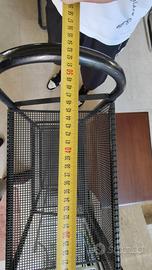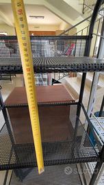 Vendo scaffale in metallo verniciato nero con 4 ripiani in rete metallica, robusto e ideale per interni, balconi, garage o negozi.