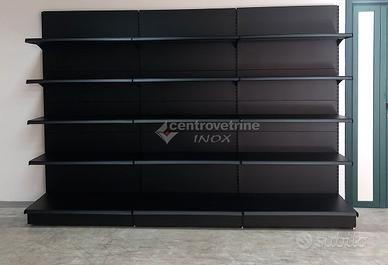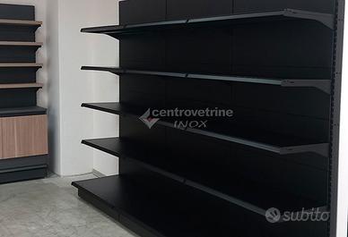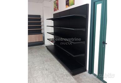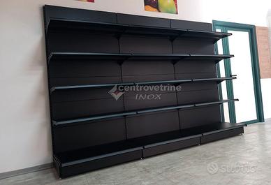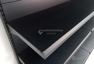 SCAFFALE IN FERRO NERO DA 303 CON PIANO BASE 40 E PIANI DA 40 Kit composto da: - N.3 Scaffalatura linea Ipermarket 35 completa di schienali, piano base unico forato da 100 X 40, N° 4 piani unici forati completi da 100 X 40 regolabili in altezza. Completo di carter inferiore. Scaffalatura metallica di colore Nero SDE, Portata piano base: KG. 230 distribuiti uniformemente, portata piano sospeso: KG. 170 distribuiti uniformemente. (Escluso portaprezzi) DIMENSIONI: 100 X 50 X 205 H - N° 1 Montante terminale da 205 X 40 Dimensioni Totali: 303 X 50 X 205 H visitate il nostro sito per vedere le nostre offerte o contattaci per avere un preventivo per un arredo a seconda delle vostre esigenze. azienda centro vetrine inox ci occupiamo di vendita di arredamenti per negozi, con servizio di spedizione in Italia, anche materiale disponibile in pronta consegna, disponibilità di visionare i prodotti presso il nostro punto vendita centro vetrine inox situato a Teramo via Camillo Bruschelli. responsabile alle vendite cristian 3357891481 - 0861/415550 vendita anche dei seguenti prodotti: arredamenti per le seguenti merceologie: arredamento per ferramenta; arredamento per negozio di animali; arredamento per alimentari; arredamenti per enoteche; arredamenti cancellerie, arredamenti cartolibrerie arredamenti per librerie, arredamenti per elettrodomestici, arredamenti negozi di elettronica, arredamenti per prodotti agricoli, Arredamenti per frutta, arredamenti per verdure, arredi per profumerie, arredi gioielleria, arredi negozi per giocattoli, arredo per negozi di caramelle, arredi per negozi di cioccolata, arredi per tabaccherie, arredamenti per calzature, arredamenti per pelletteria, arredamenti per borsettificio, mobile per oggettistica, arredi per abbigliamento, negozi per telefonia. arredamento per cosmesi e bigiotteria. visitate il nostro sito per vedere le nostre offerte o contattaci per avere un preventivo per un arredo a seconda delle vostre esigenze.