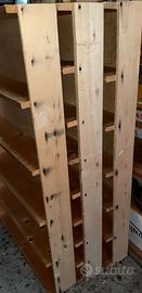 Vendo 3 piccoli scaffali particolari, in legno, con pannello da 1 cm in pioppo come spalla ,telaio e ripiani in tavole legno da cm 2 di spessore ,misure alt.cm 120 x cm 71 di larg. X cm 14,5 di prof.ta'.