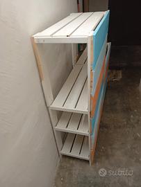 scaffale in legno con giunta di asse in legno colorate 130/75x158x36