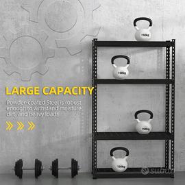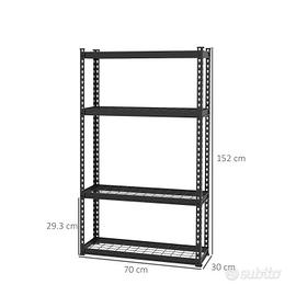 DIMENSIONI: Dimensioni generali: 70L x 30P x 152A cm. Dimensioni di ogni ripiano: 69.3L x 29.3P cm. Capacità di peso: 600 kg (totale), 150 kg (ogni ripiano)