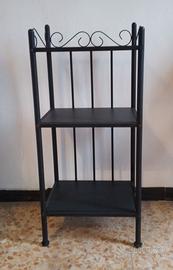Scaffale in metallo nero e ripiano in vetro