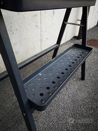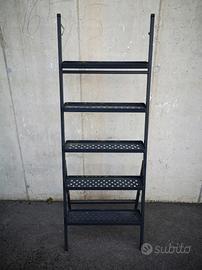 Vendo scaffale per piante in metallo, in ottimo stato, usato pochissimo. Dimensioni: larghezza 63cm, altezza 173cm Colore: grigio scuro Carico massimo per ripiano 10kg Dotato di fettucce in sommità per il fissaggio a parete