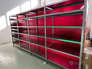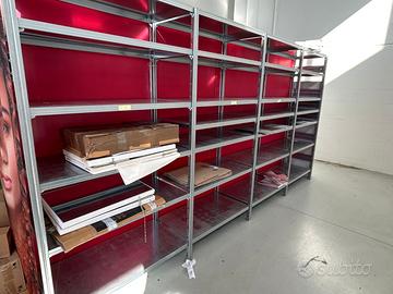 Vendita di 15 metri lineari di scaffalatura modulare zincata lo ad incastro senza viti, si monta e si smonta molto velocemente con il semplice utilizzo delle mani. Vendibile in blocco o in porzioni di almeno 5/6 metri.