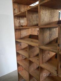 Scaffale industriale in legno di abete. Pulito e restaurato.