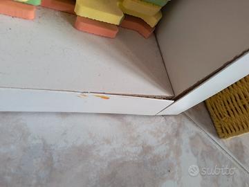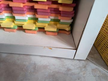 Scaffale Kallax, ceste comprese. Se si desidera, anche i tappetini inclusi. Ha i bordi inferiori leggermente rigonfi per acqua come da foto. Per il resto va bene.